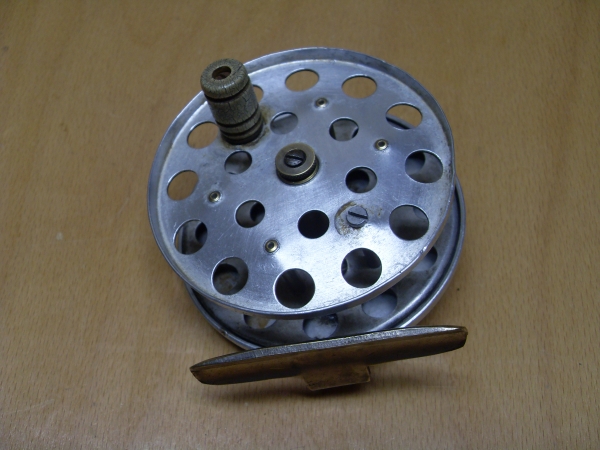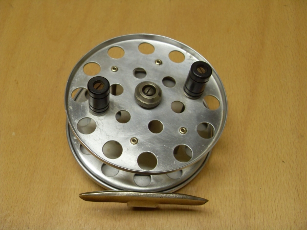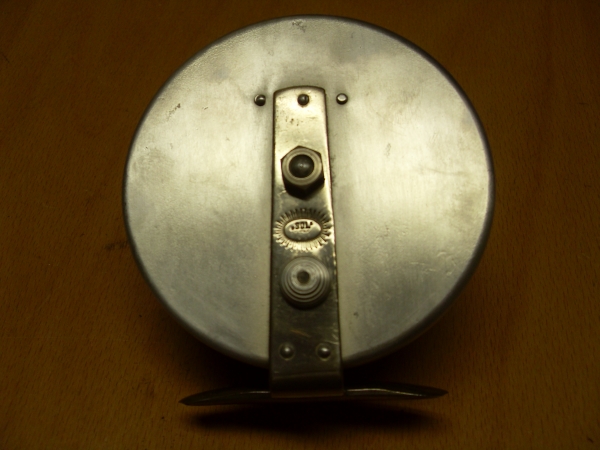 Veliký na plocho ležící štikový a hlavatkový naviják - SOL Stabilní- Celý z tvrdého hliníku,s velikou rukojetí a velikým průměrem příčky/rychlé navinutí šnůry/,podstavec silný a poniklovaný,silné poniklůované ocelové péro k brždění palcem./Naviják se dobře hodí také pro lov na těžko ,ježto je zvlášt silně stavěn a nezničitelný/,průměr 130 mm, v krabici.