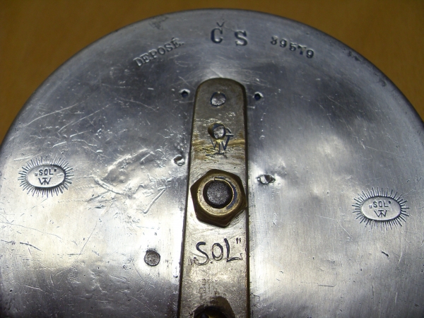 Veliký na plocho ležící ,štikový a hlavatkový naviják ,značky SOL - STABILNÍ . Celý z tvrdého hliníku s velikou rukojetí a velkým průměrem příčky /rychlé navinutí šnůry/,podstavec silný a poniklovaný,silné poniklované ocelové péro k brždění palcem./Naviják se dobře hodí pro rybolov na těžko ,ježto je zvlášt silně stavěn a nezničitelný./ průměr 130mm.