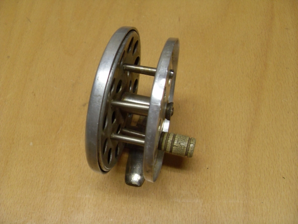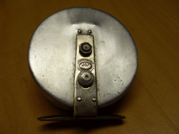 Veliký na plocho ležící štikový a hlavatkový naviják - SOL Stabilní- Celý z tvrdého hliníku,s velikou rukojetí a velikým průměrem příčky/rychlé navinutí šnůry/,podstavec silný a poniklovaný,silné poniklůované ocelové péro k brždění palcem./Naviják se dobře hodí také pro lov na těžko ,ježto je zvlášt silně stavěn a nezničitelný/,průměr 130 mm, v krabici.
