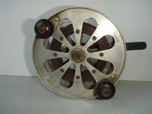 Naviják se zadní deskou ze silného hliníku,cívkou usazenou v ložiskách a patkou mosaznou,silně noklovanou.dodáváme ve dvou velikostech 80 , 90 mm průměr cívky.