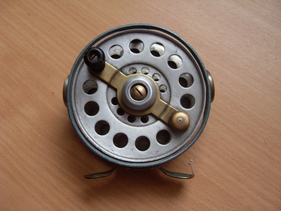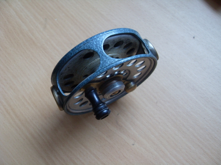 speciální naviják muškařský s vodícím kroužkem zamontovaným ve skřínce navijáku,ze speciální hliníkové směsi,na zadní stěně kotoučové nachází se kolo celuloidové pro zachycení konce šnůry ,bezvadná celková úprava , váha asi 190 g.