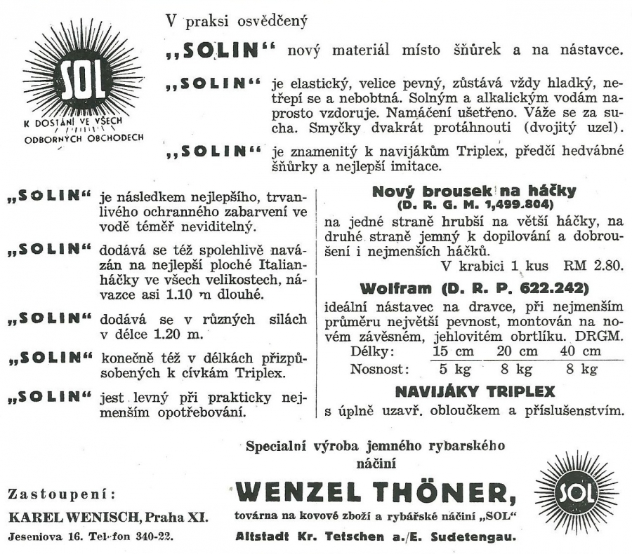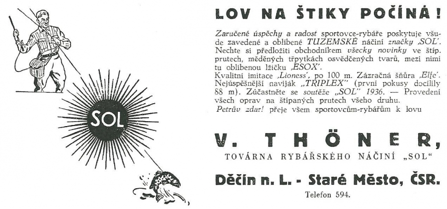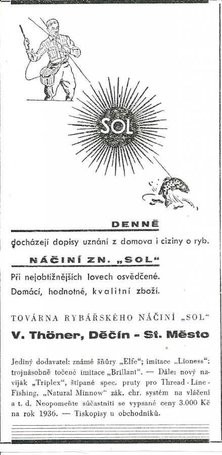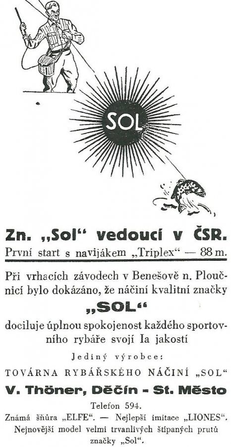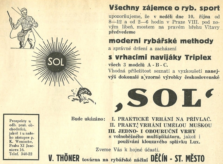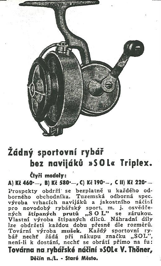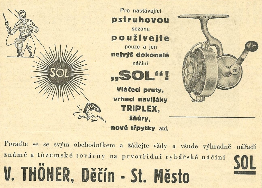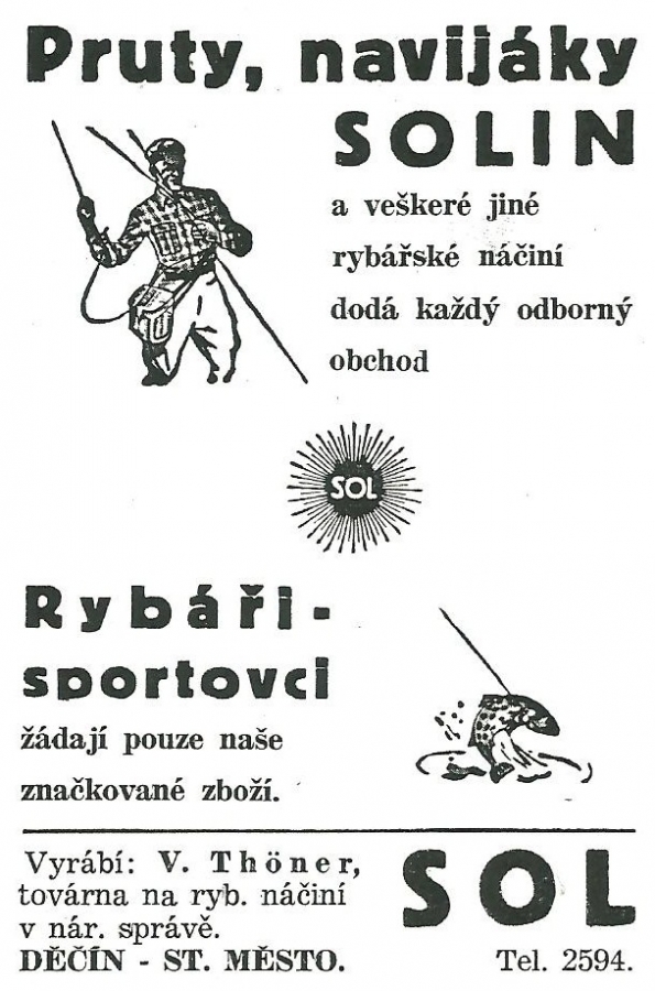 Reklamy firmy SOL Děčín:Antik Rolle und Rute,Old reels and rods.