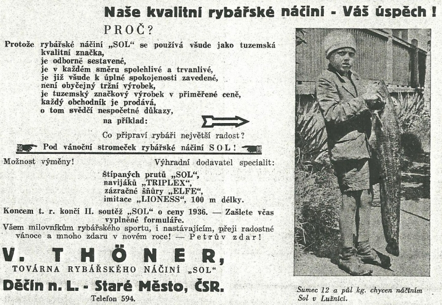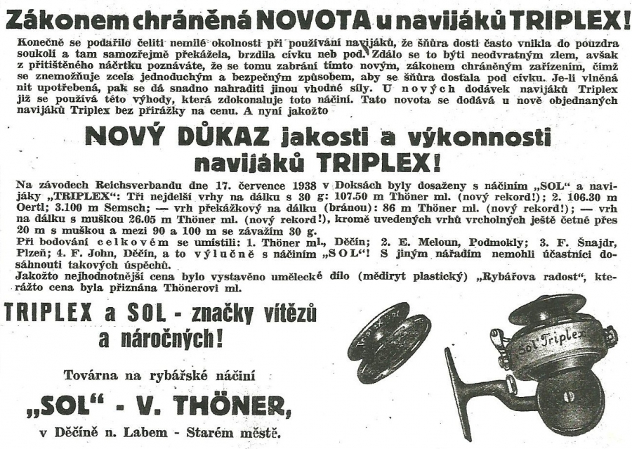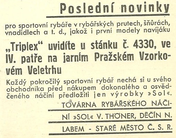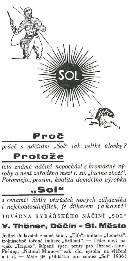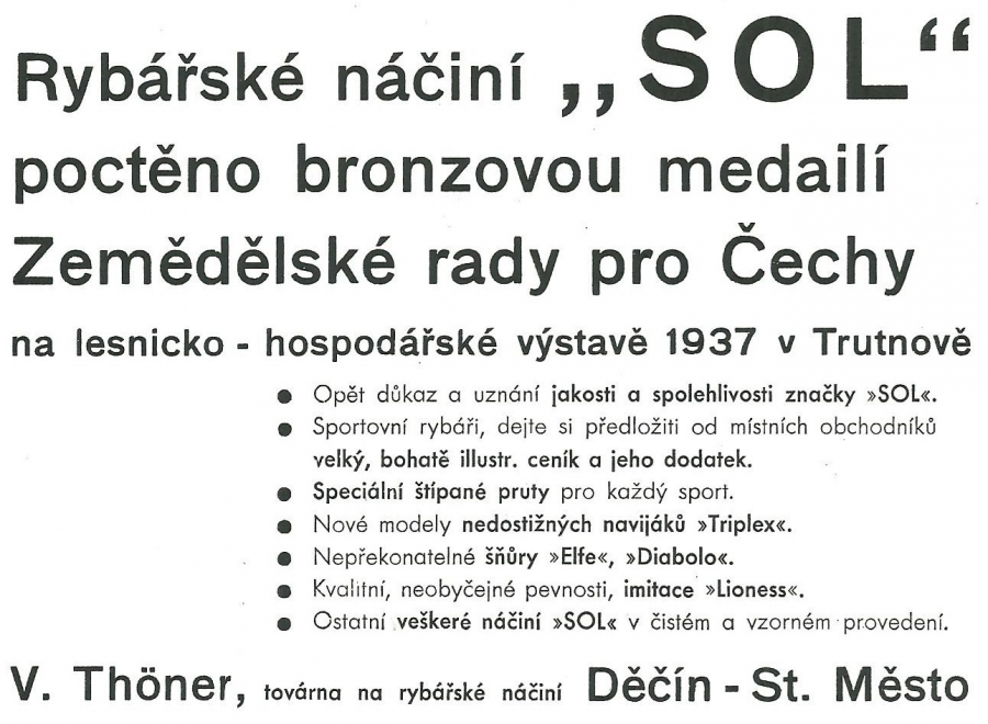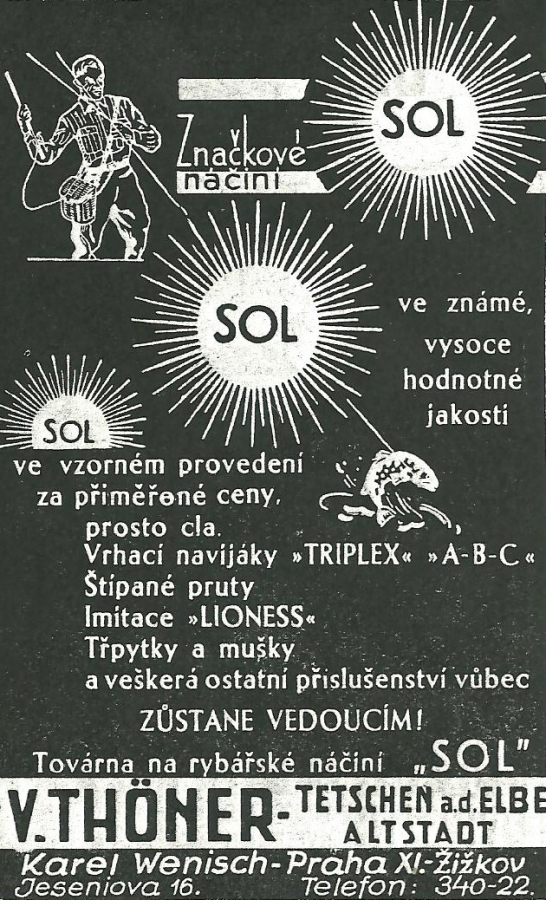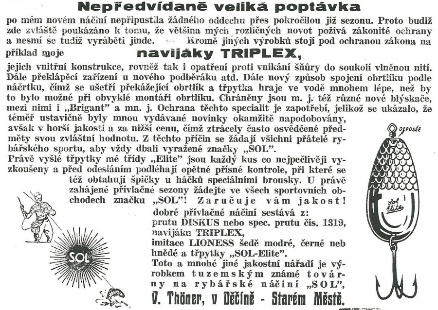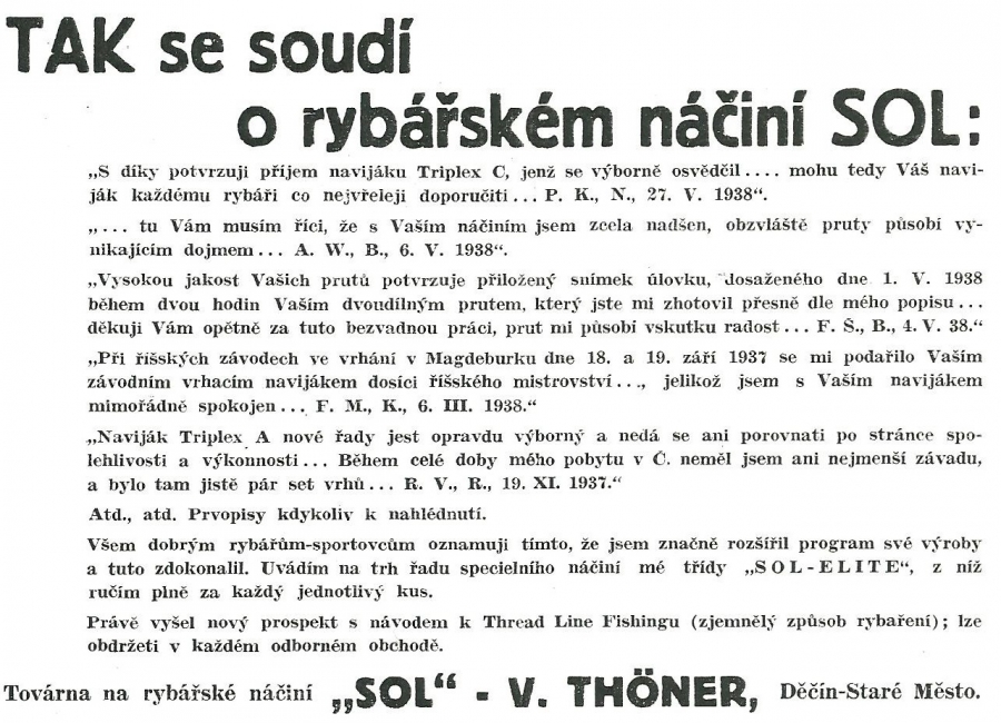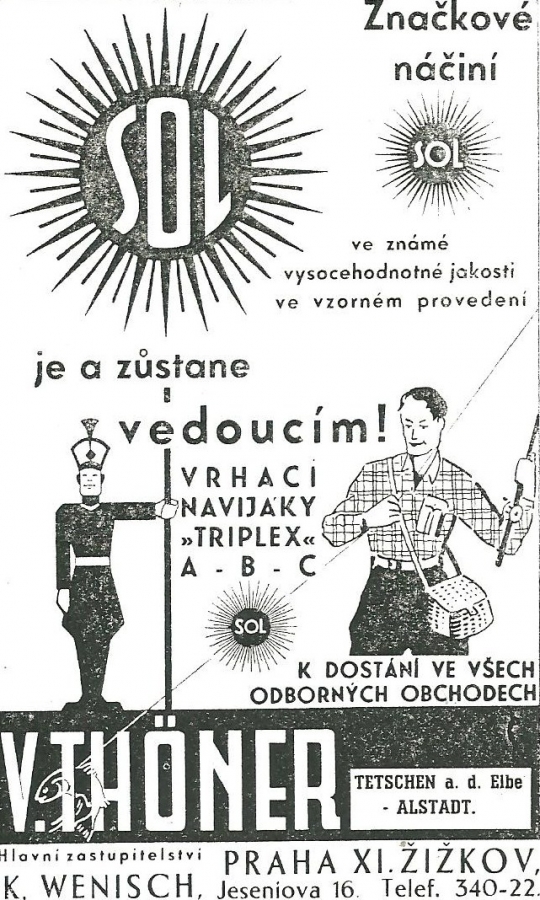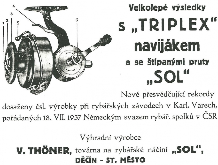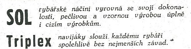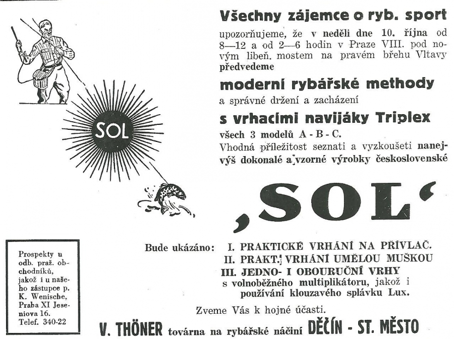 Reklamy firmy SOL Děčín:Antik Rolle und Rute,Old reels and rods.