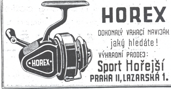 Reklamy a katalogy Ota Horejší Praha HOREX:Antik Rolle und Rute,Old reels and rods.