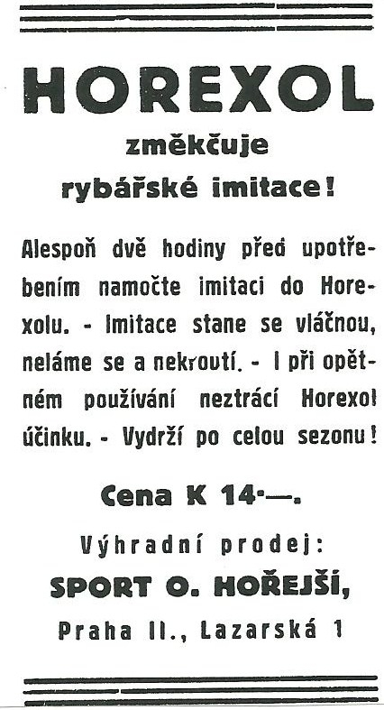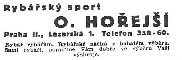 Reklamy a katalogy Ota Horejší Praha HOREX:Antik Rolle und Rute,Old reels and rods.