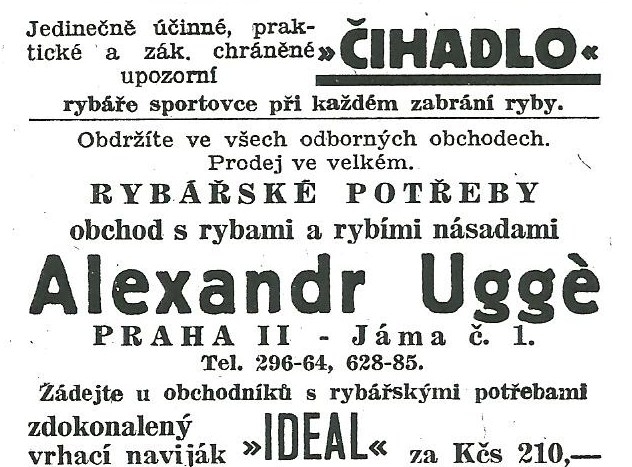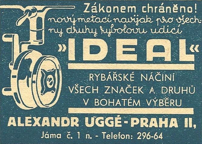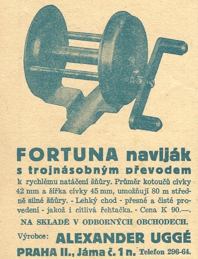 Alexandr Uggé Praha - reklamy a katalogy:Antik Rolle und Rute,Old reels and rods.
