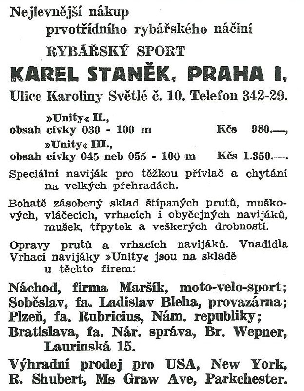 Karel Staněk Praha reklamy a katalogy:Antik Rolle und Rute,Old reels and rods.