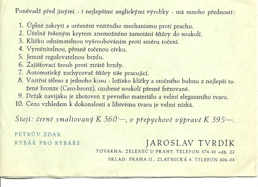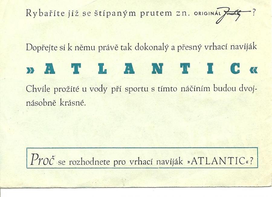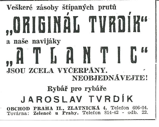 Jaroslav Tvrdík Praha ATLANTIC - reklamy a katalogy:Antik Rolle und Rute,Old reels and rods.