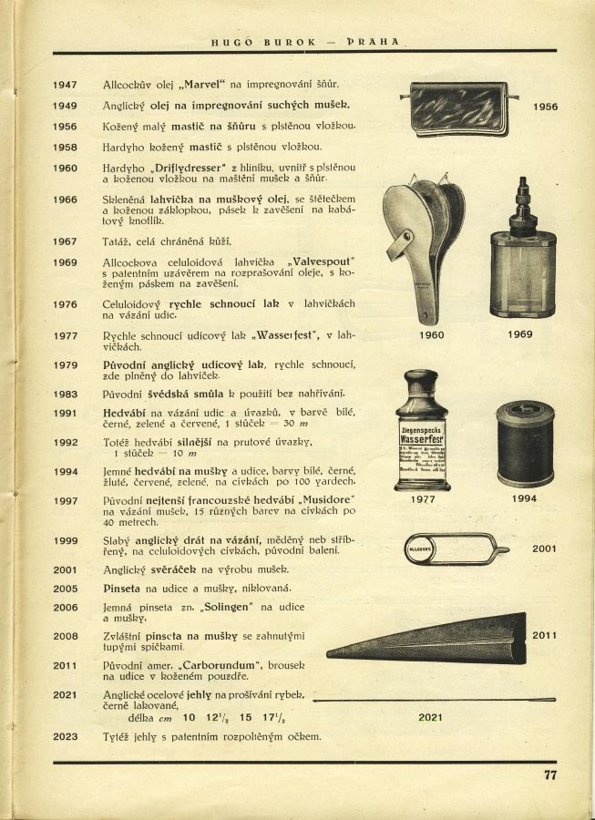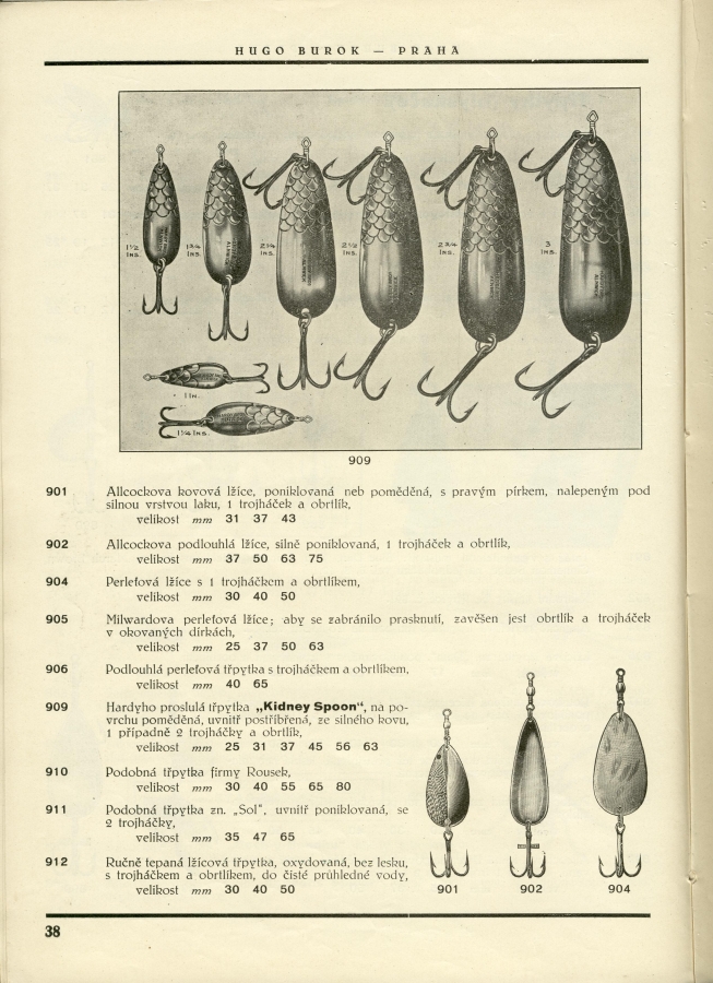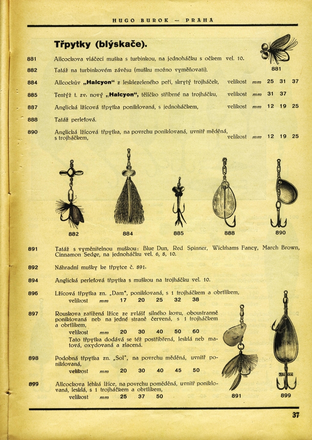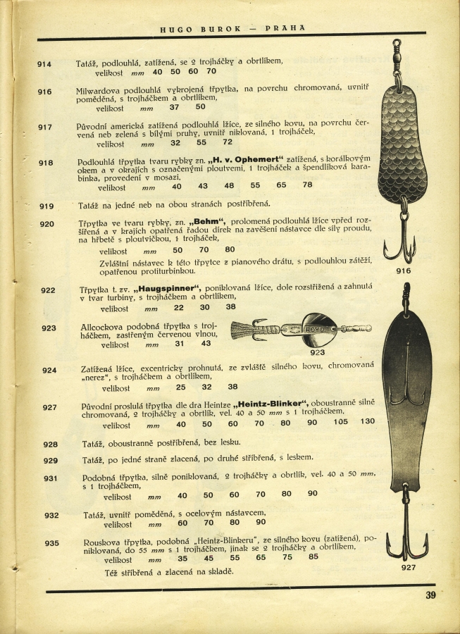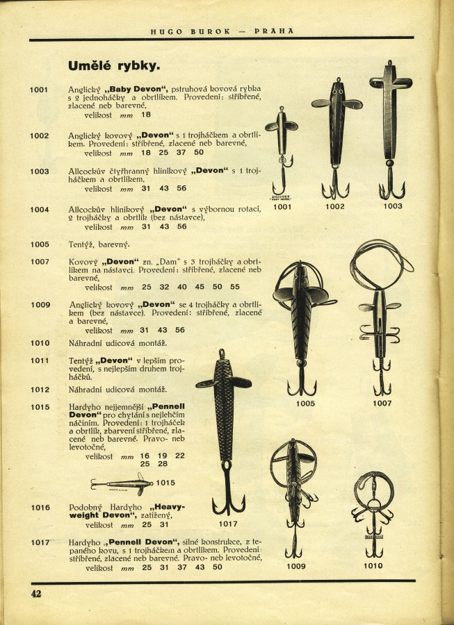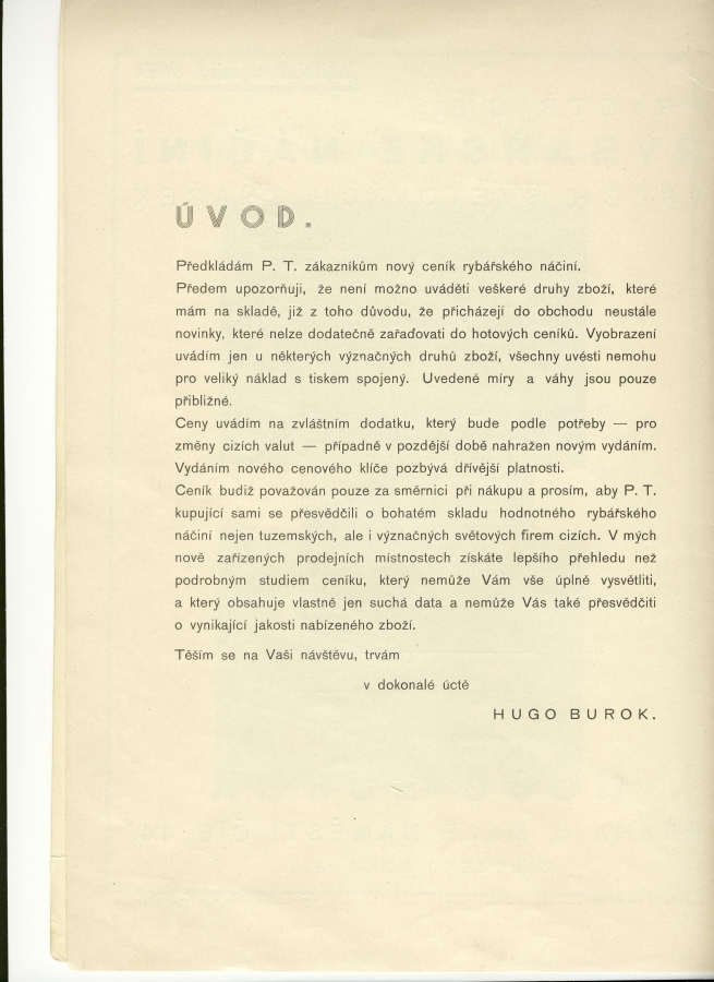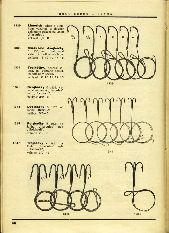 Katalog firmy Hugo Burok největšího prodejce rybářských potřeb v Praze i celém Československu.Vydáno roku 1937 k výročí firmy.