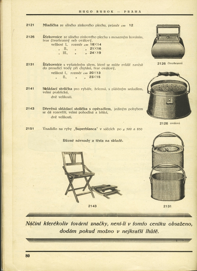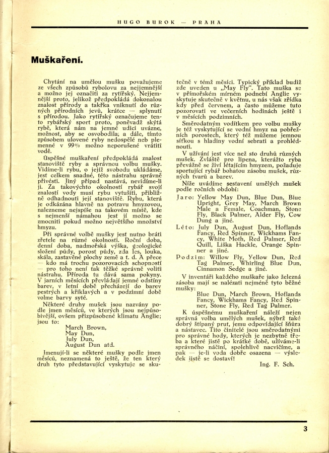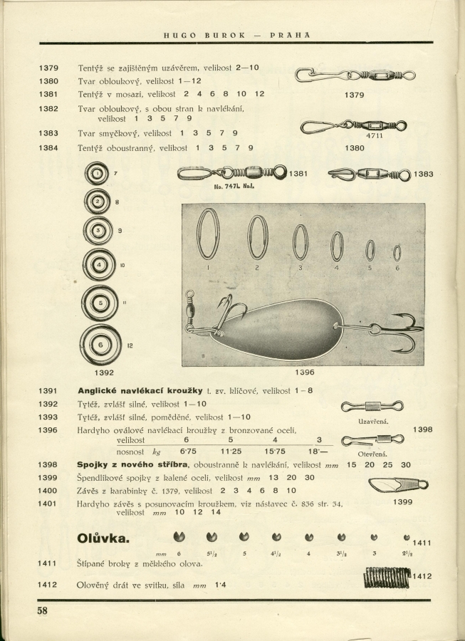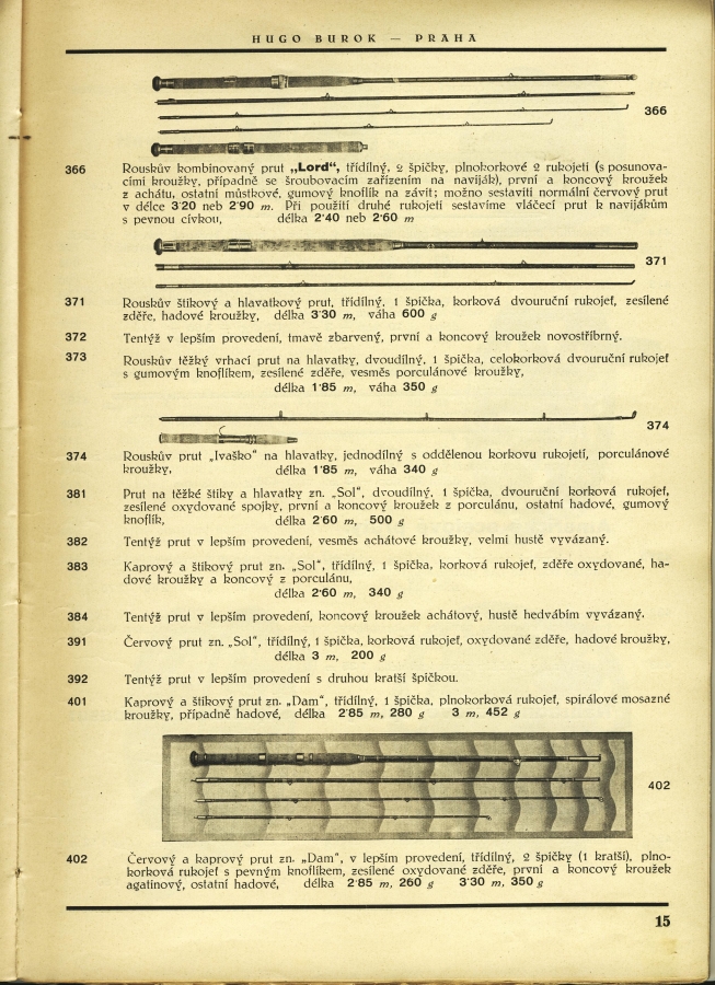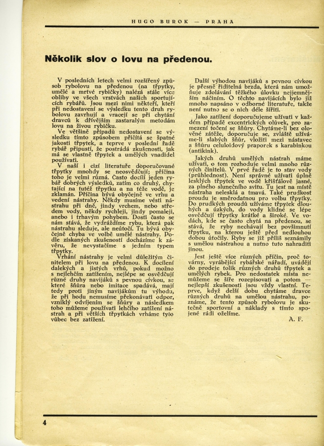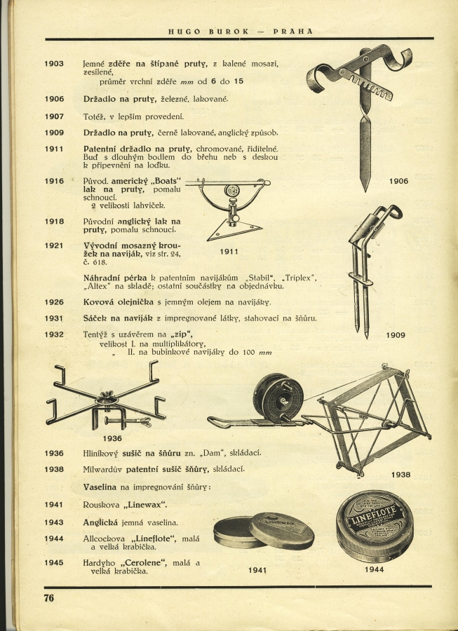 Katalog firmy Hugo Burok největšího prodejce rybářských potřeb v Praze i celém Československu.Vydáno roku 1937 k výročí firmy.