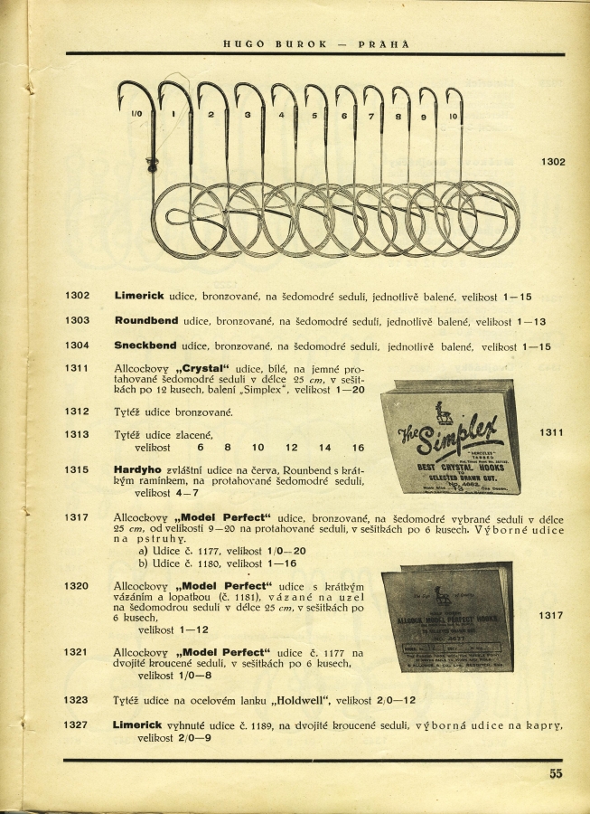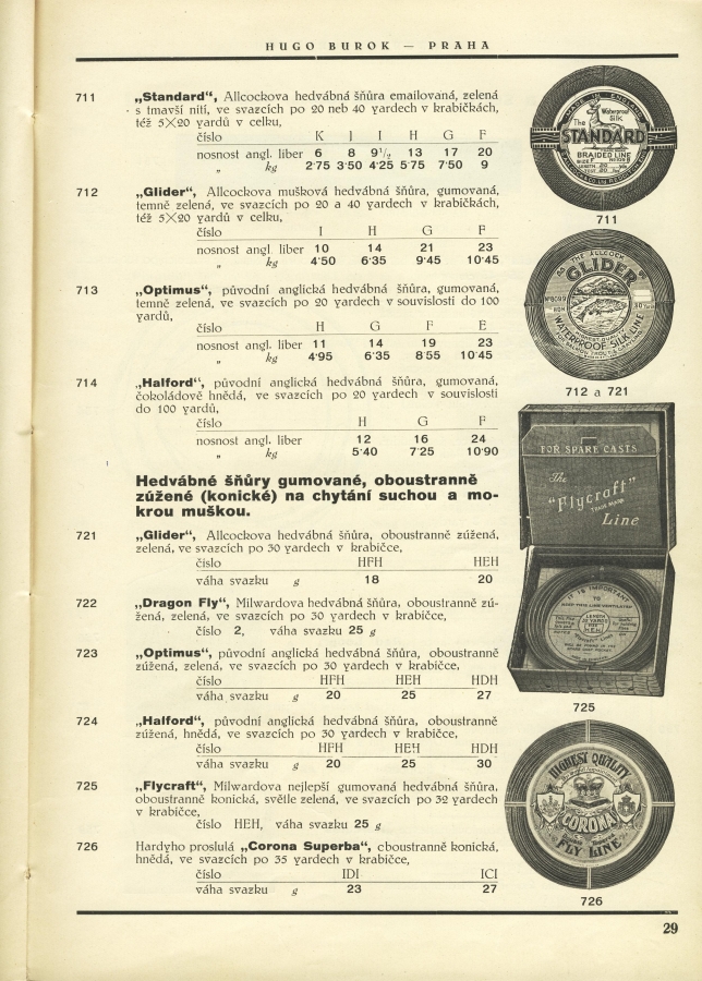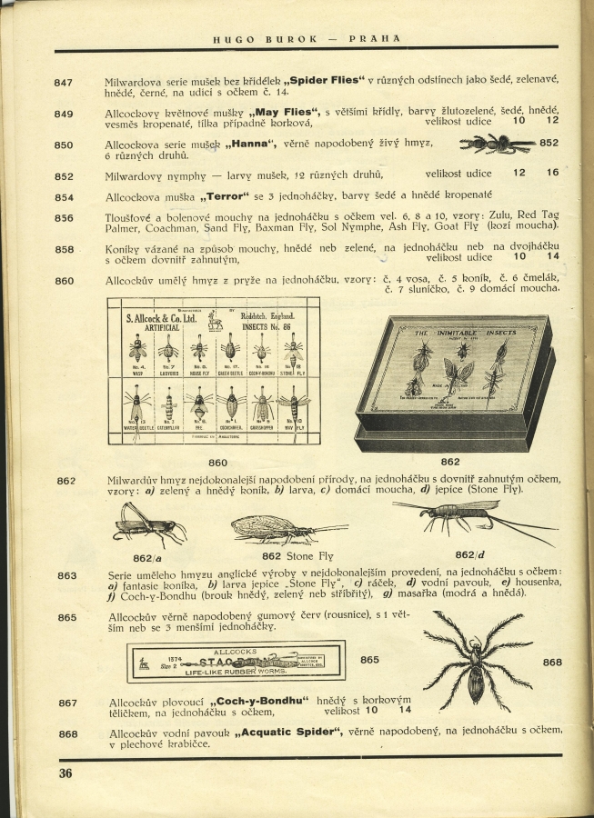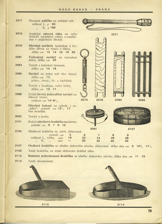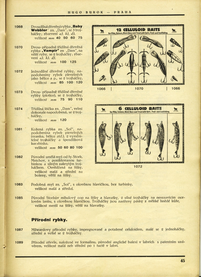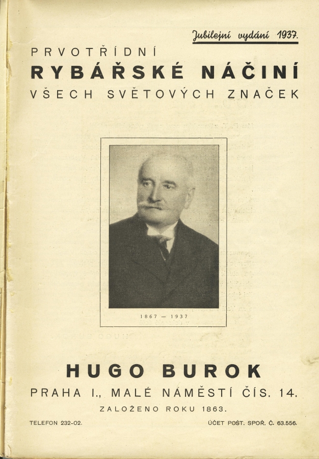 Katalog firmy Hugo Burok největšího prodejce rybářských potřeb v Praze i celém Československu.Vydáno roku 1937 k výročí firmy.