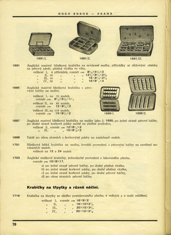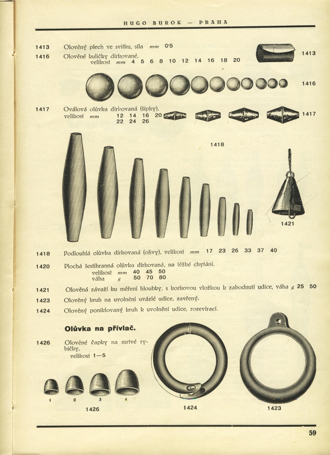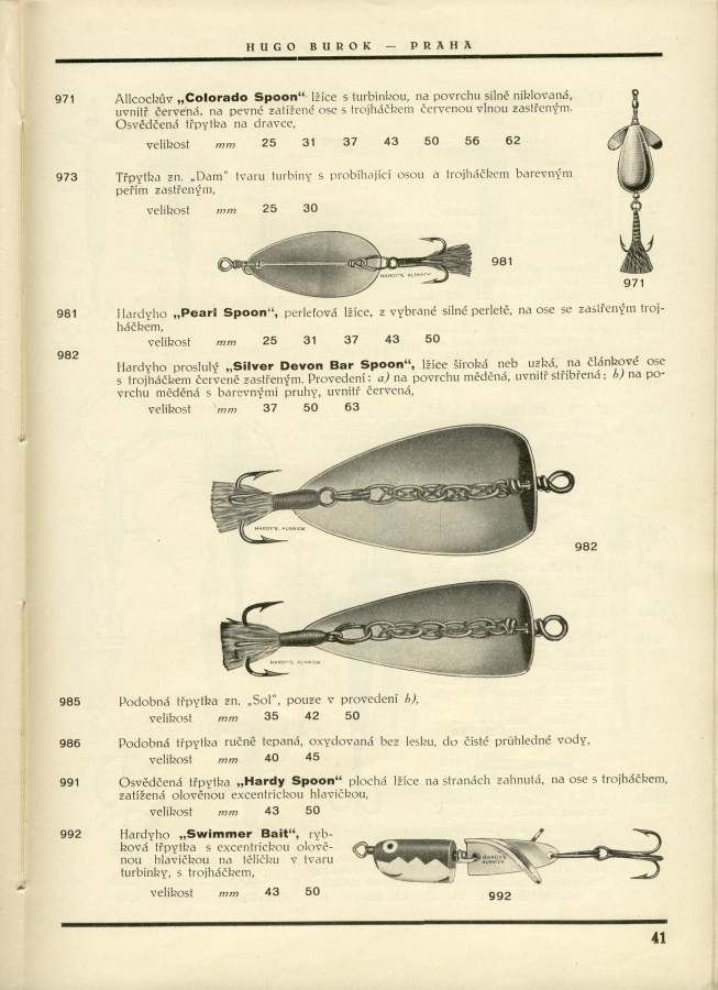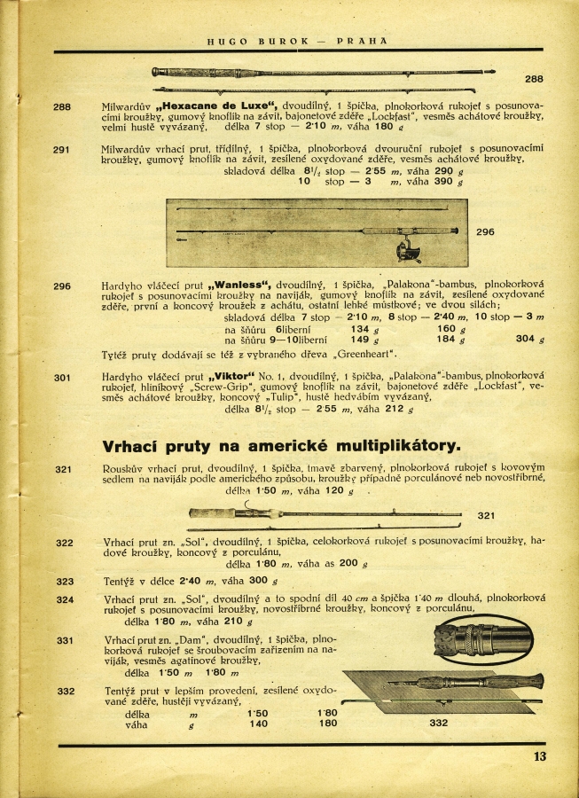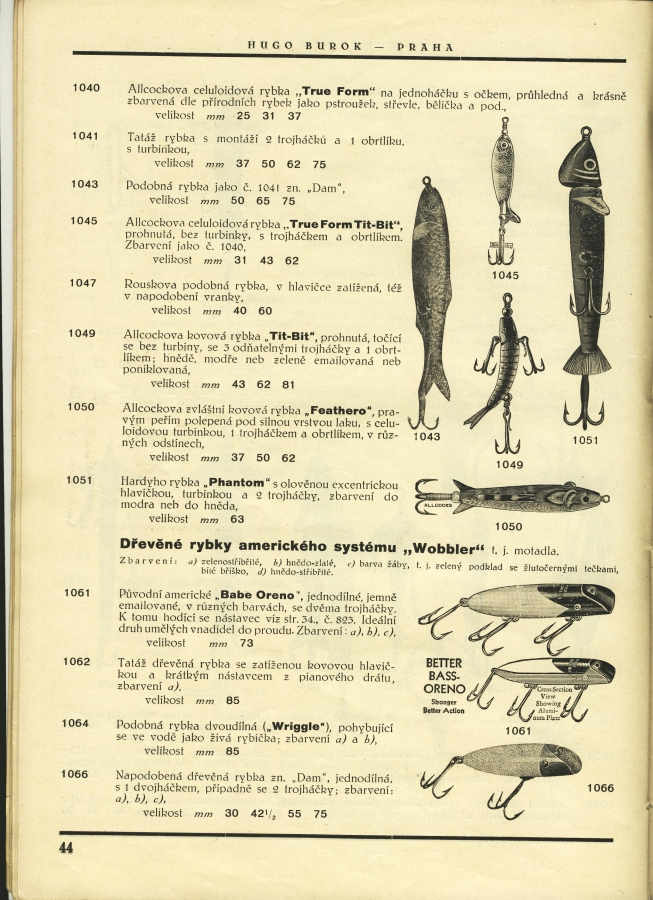 Katalog firmy Hugo Burok největšího prodejce rybářských potřeb v Praze i celém Československu.Vydáno roku 1937 k výročí firmy.