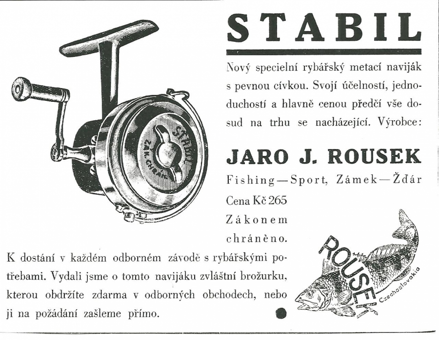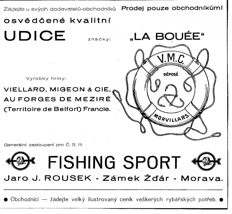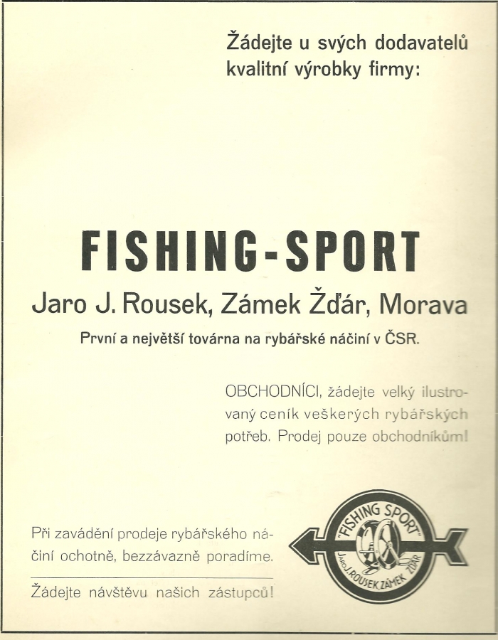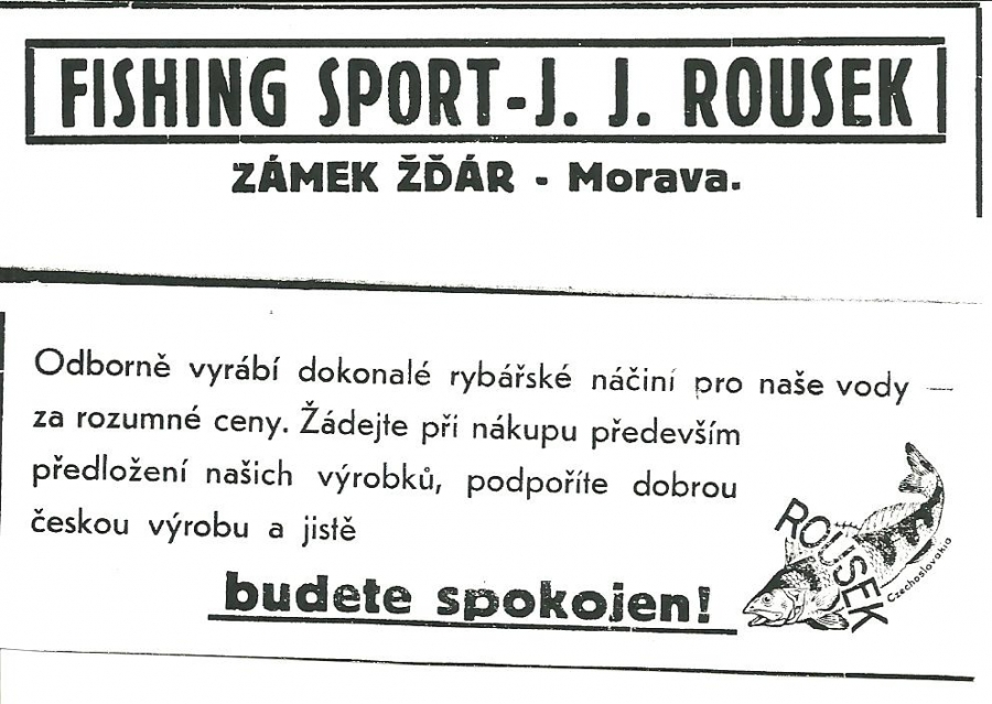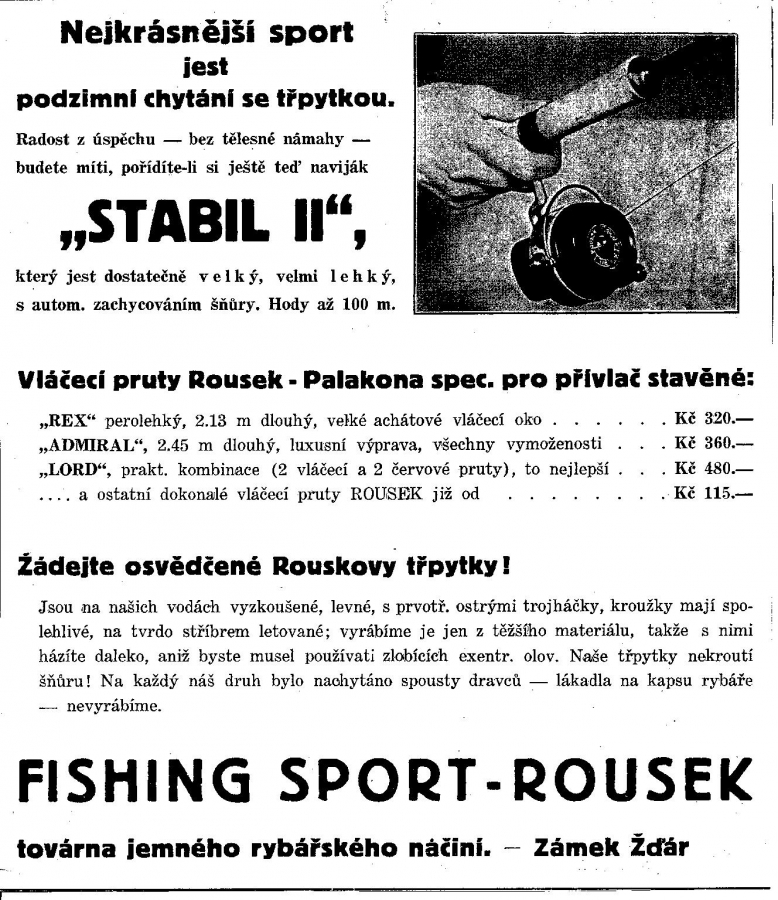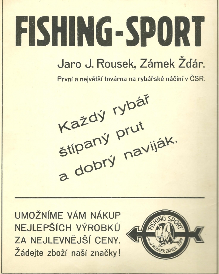 Reklamy firmy ROUSEK:Antik Rolle und Rute,Old reels and rods.