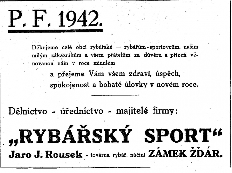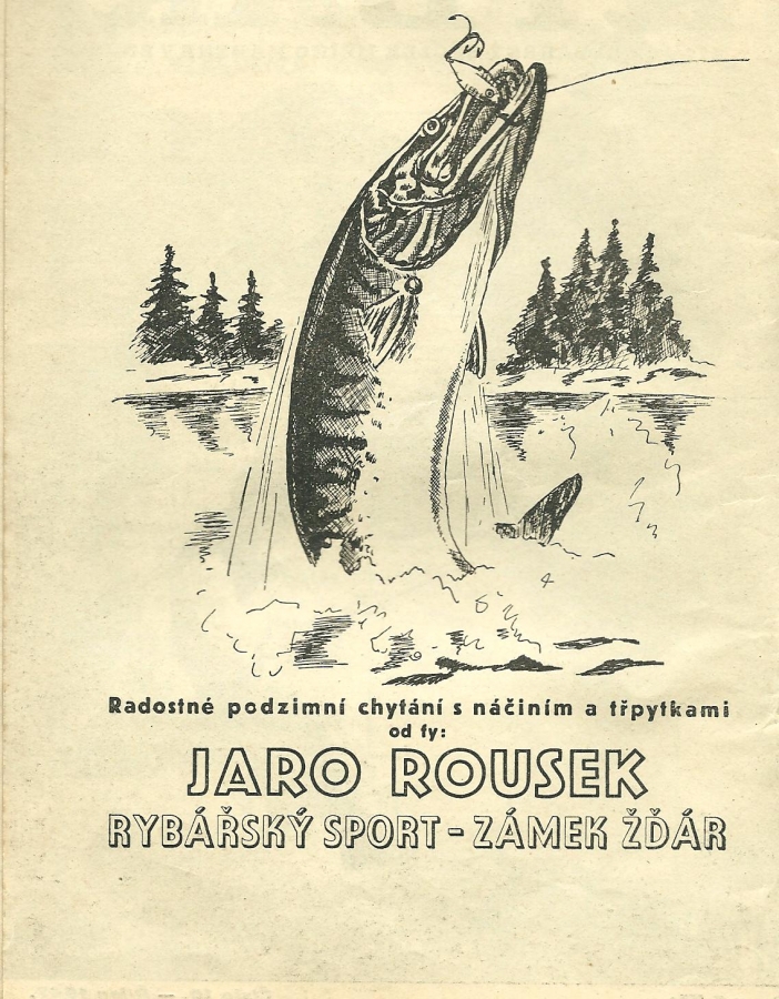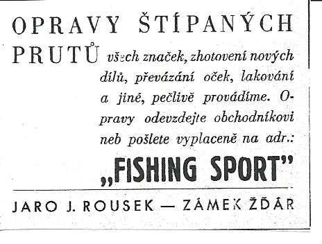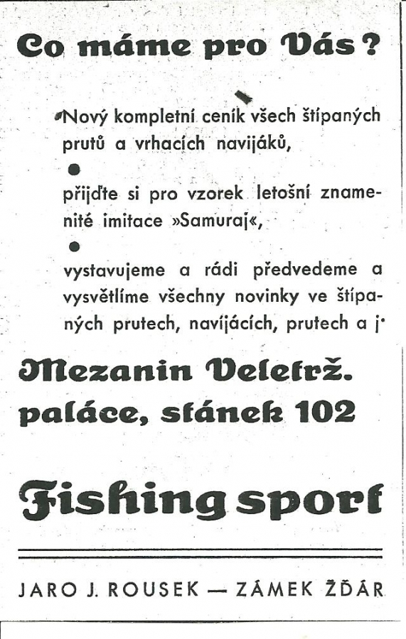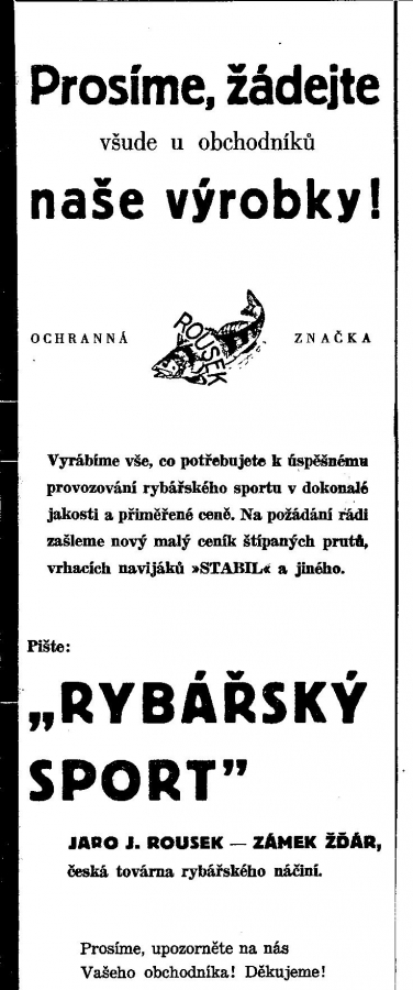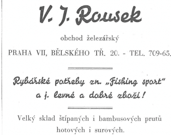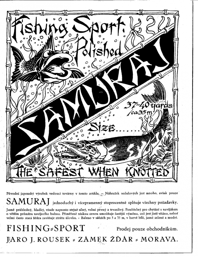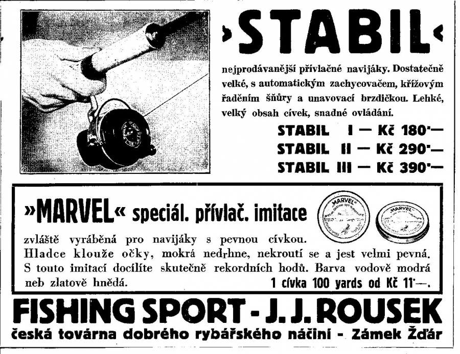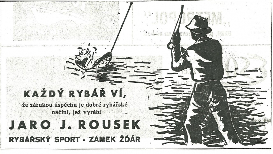 Reklamy firmy ROUSEK:Antik Rolle und Rute,Old reels and rods.