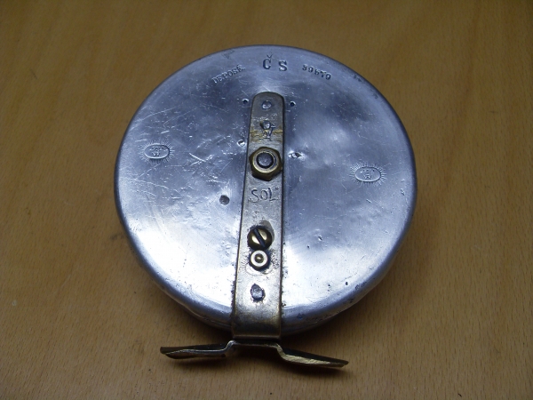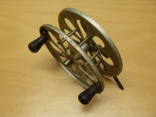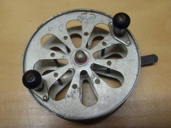 Veliký na plocho ležící štikový a hlavatkový naviják - SOL Stabilní- Celý z tvrdého hliníku,s velikou rukojetí a velikým průměrem příčky/rychlé navinutí šnůry/,podstavec silný a poniklovaný,silné poniklůované ocelové péro k brždění palcem./Naviják se dobře hodí také pro lov na těžko ,ježto je zvlášt silně stavěn a nezničitelný/,průměr 130 mm, v krabici.