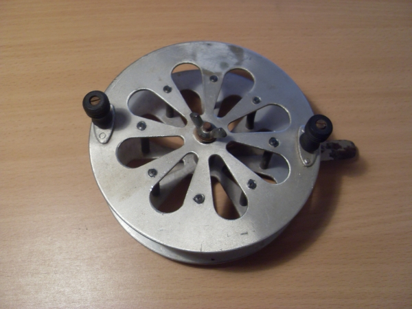 Naviják se zadní deskou ze silného hliníku,cívkou usazenou v ložiskách a patkou mosaznou,silně noklovanou.dodáváme ve dvou velikostech 80 , 90 mm průměr cívky.