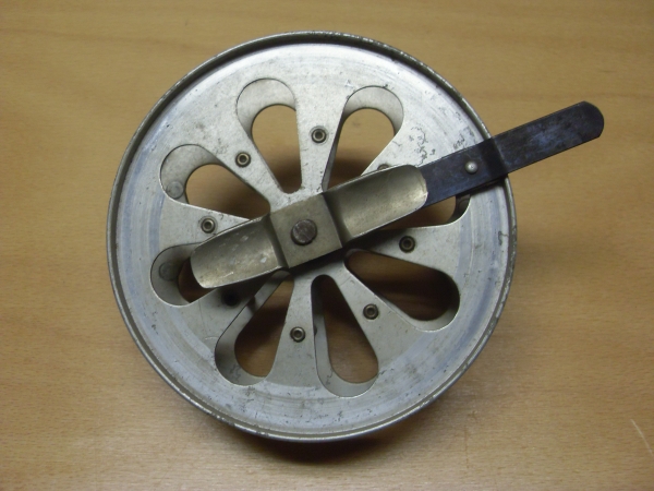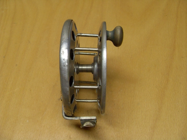 Veliký na plocho ležící štikový a hlavatkový naviják - SOL Stabilní- Celý z tvrdého hliníku,s velikou rukojetí a velikým průměrem příčky/rychlé navinutí šnůry/,podstavec silný a poniklovaný,silné poniklůované ocelové péro k brždění palcem./Naviják se dobře hodí také pro lov na těžko ,ježto je zvlášt silně stavěn a nezničitelný/,průměr 130 mm, v krabici.