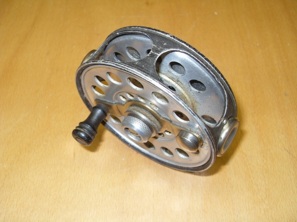 speciální naviják muškařský s vodícím kroužkem zamontovaným ve skřínce navijáku,ze speciální hliníkové směsi,na zadní stěně kotoučové nachází se kolo celuloidové pro zachycení konce šnůry ,bezvadná celková úprava , váha asi 190 g.