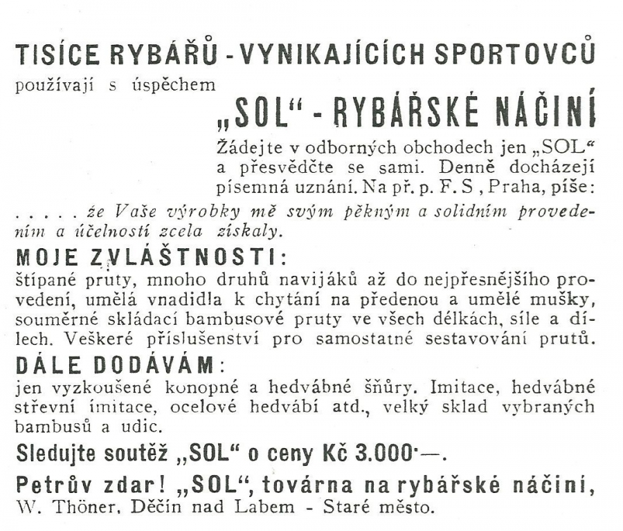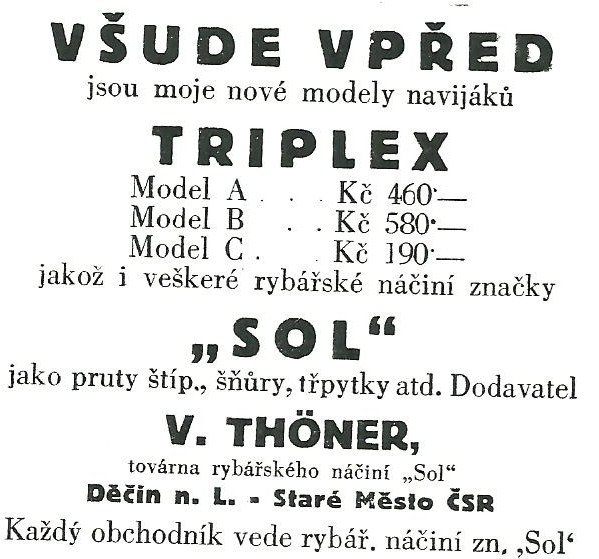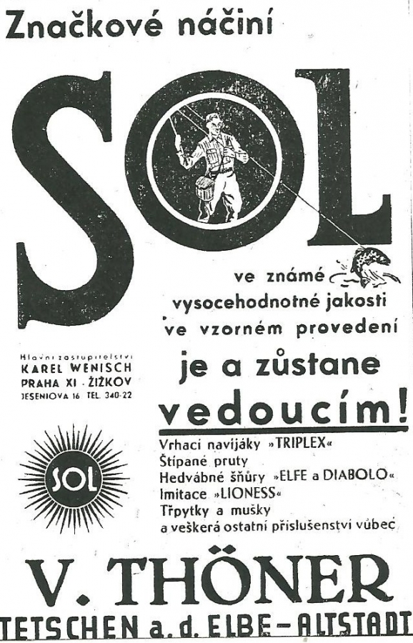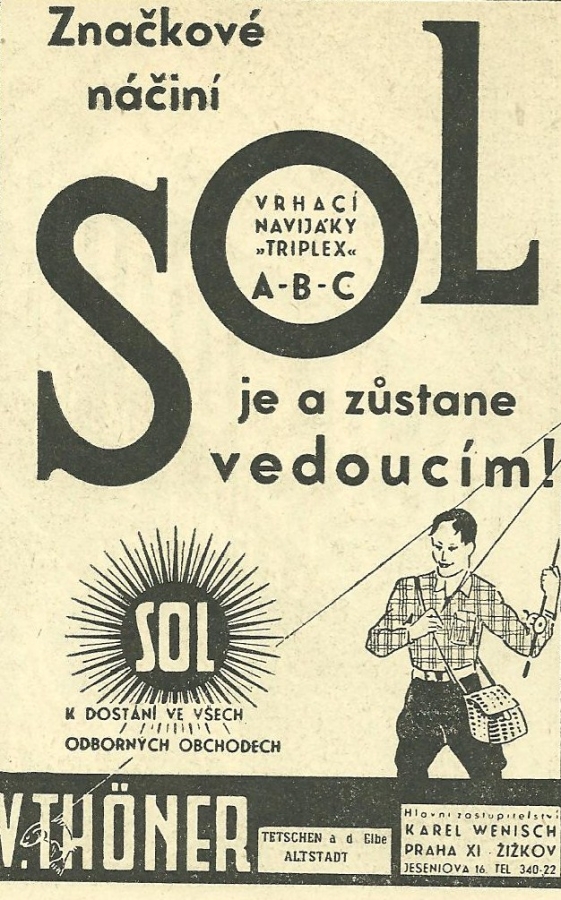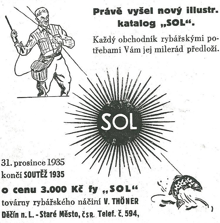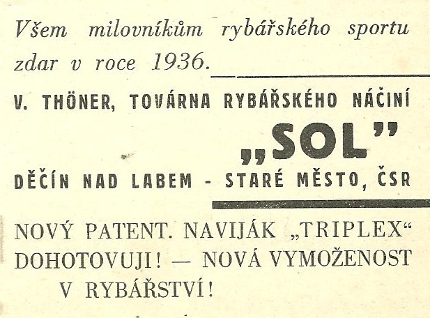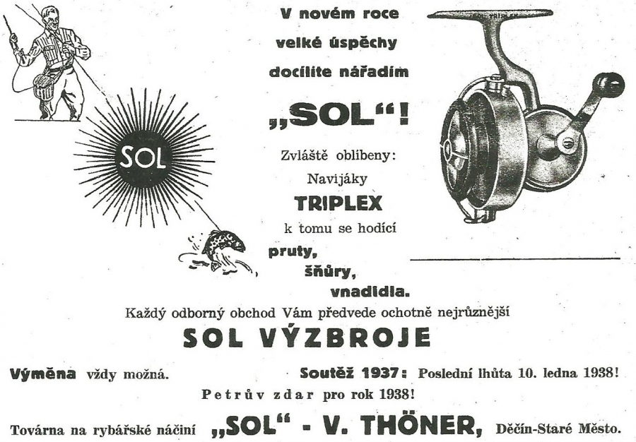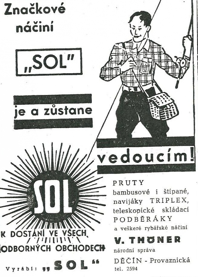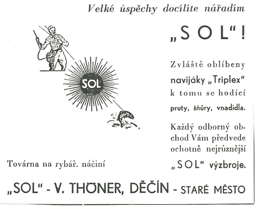 Reklamy firmy SOL Děčín:Antik Rolle und Rute,Old reels and rods.