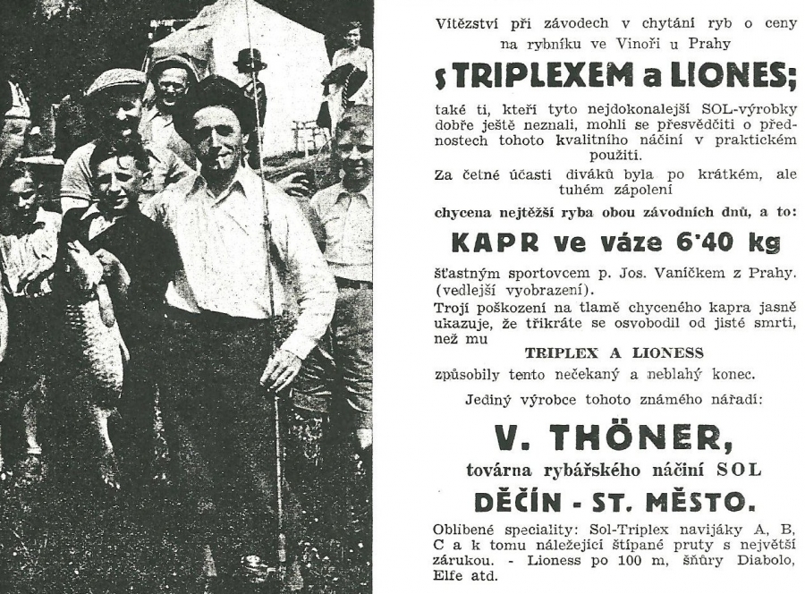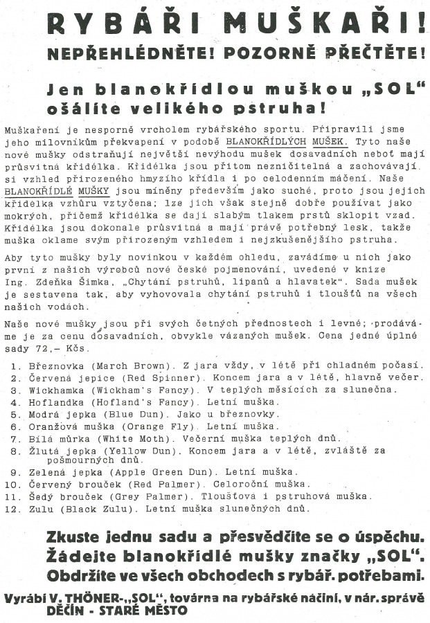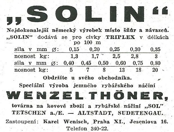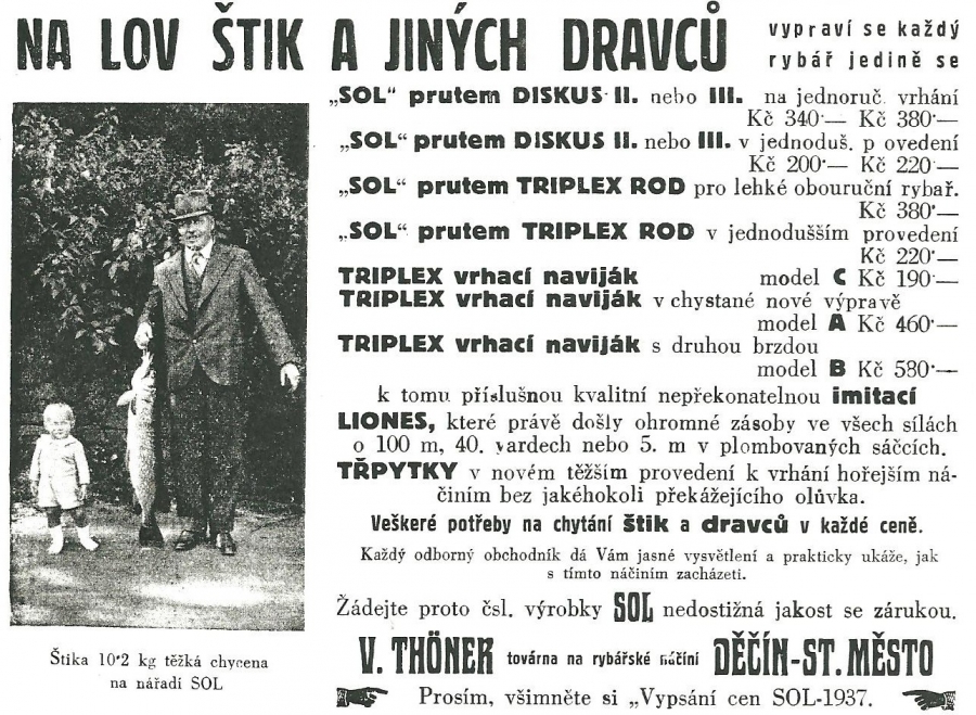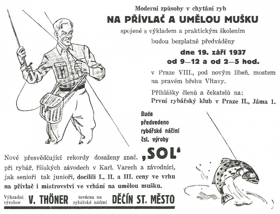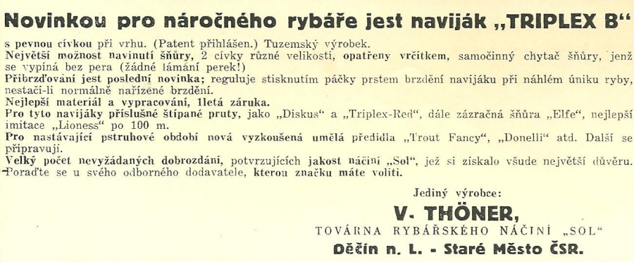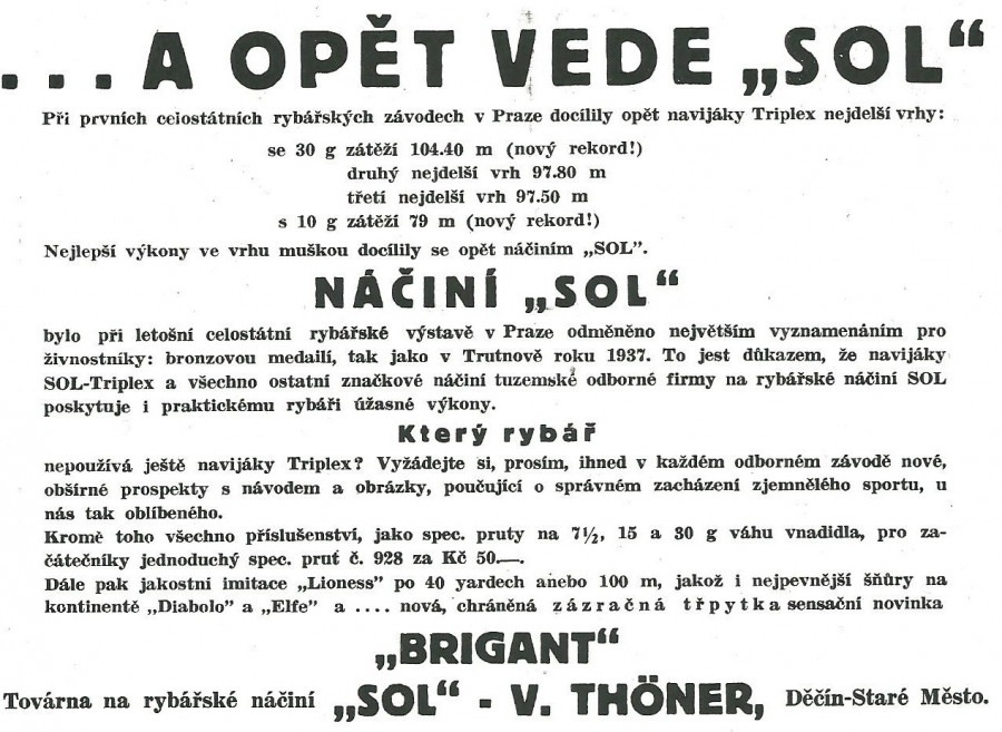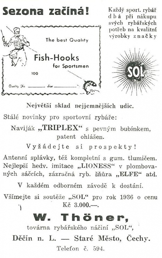 Reklamy firmy SOL Děčín:Antik Rolle und Rute,Old reels and rods.