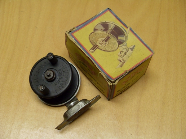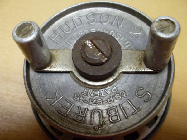 Otočné navijáky firmy Stibůrek Praha - HUDSON:Antik Rolle und Rute,Old reels and rods.