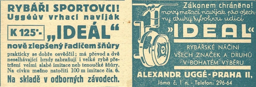 Alexandr Uggé Praha - reklamy a katalogy:Antik Rolle und Rute,Old reels and rods.