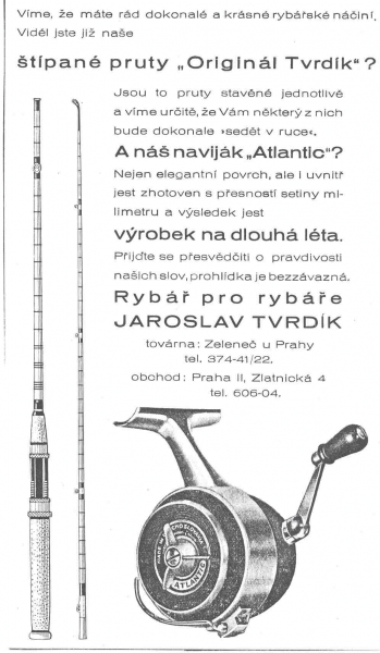Jaroslav Tvrdík Praha ATLANTIC - reklamy a katalogy:Antik Rolle und Rute,Old reels and rods.