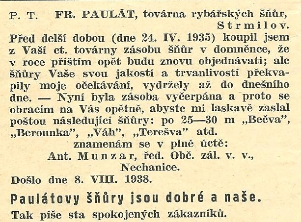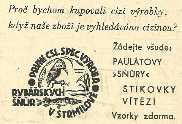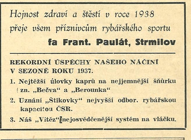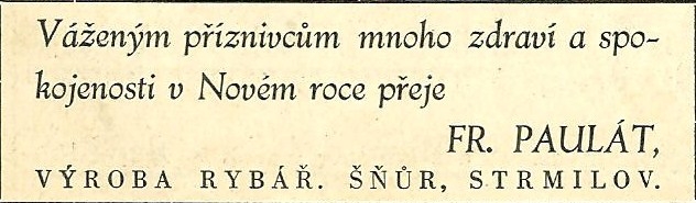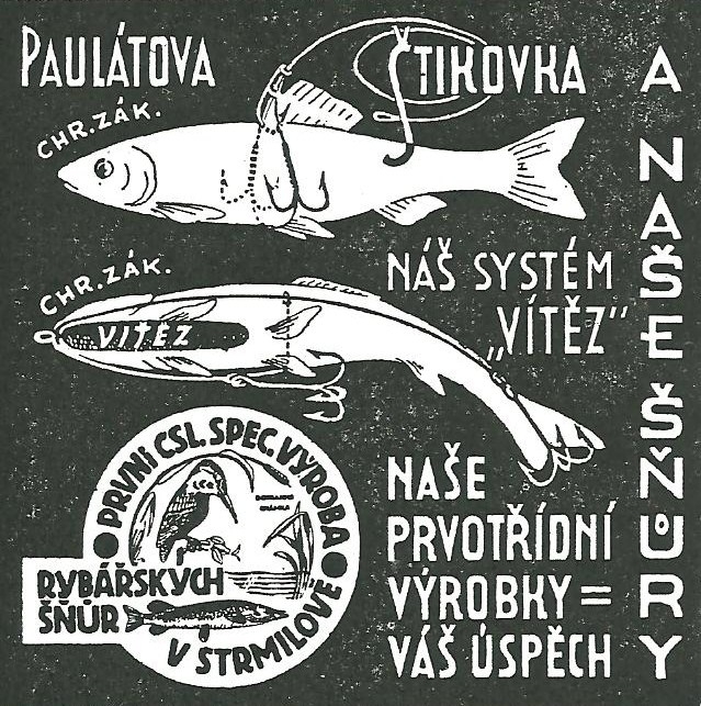 František Paulát Strmilov - reklamy a katalogy:Antik Rolle und Rute,Old reels and rods.
