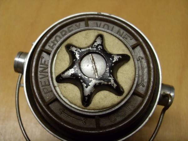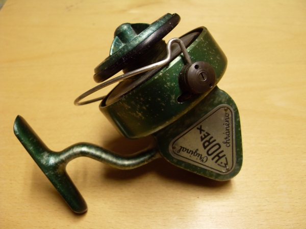 Horejší Ota Praha - HOREX smekací:Antik Rolle und Rute,Old reels and rods.