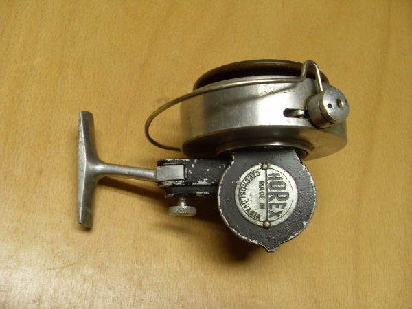 Horejší Ota Praha - HOREX smekací:Antik Rolle und Rute,Old reels and rods.
