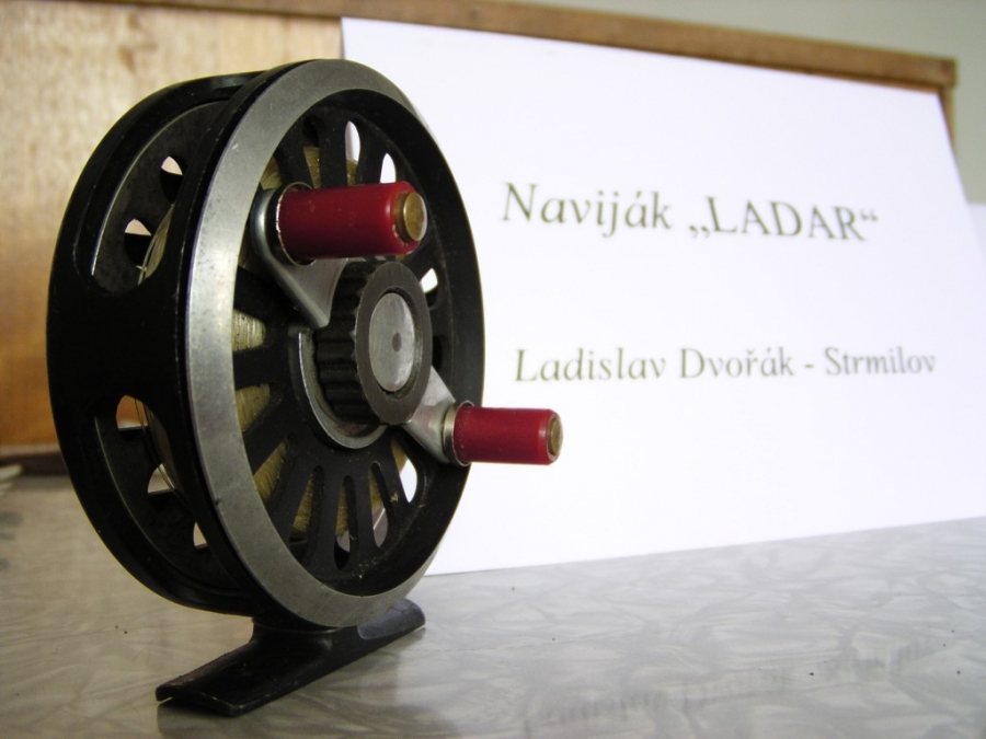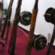Strmilov - výstava Strmilovského rybářského spolku pořádaná k 80 výročí založení.:Antik Rolle und Rute,Old reels and rods.