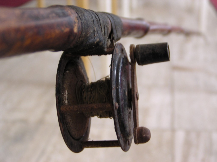 Antik Rolle und Rute,Old reels and rods.