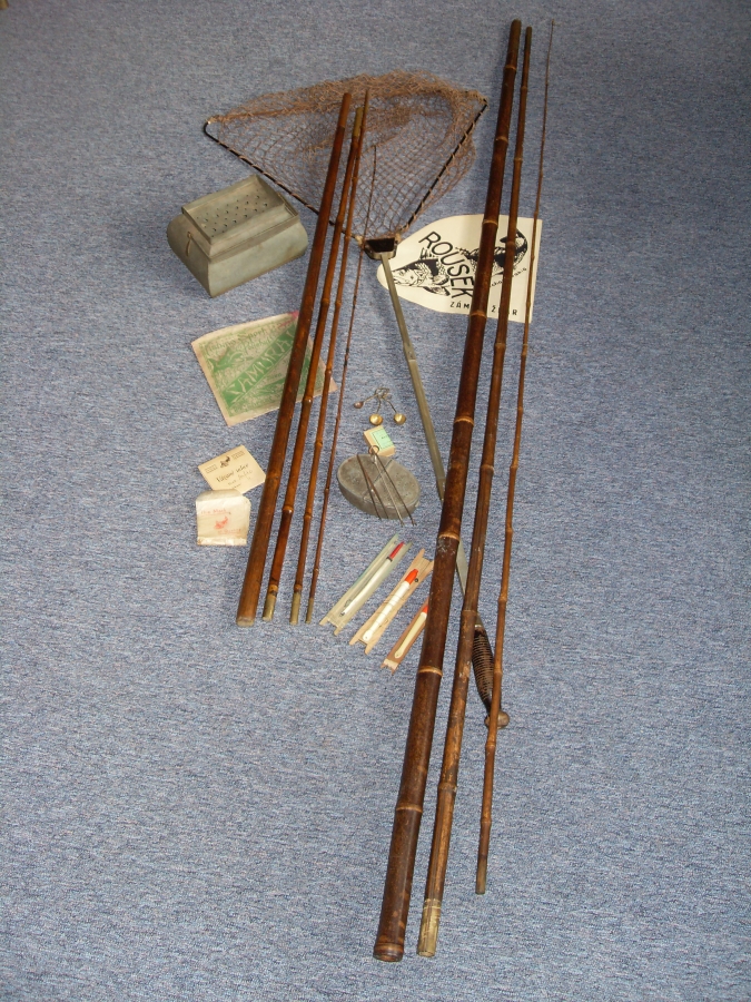 Rybaření s historickým nářadím do roku 1948:Antik Rolle und Rute,Old reels and rods.