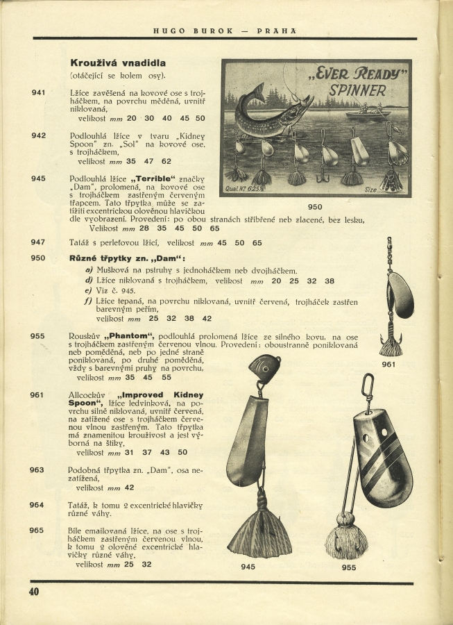Katalog firmy Hugo Burok největšího prodejce rybářských potřeb v Praze i celém Československu.Vydáno roku 1937 k výročí firmy.