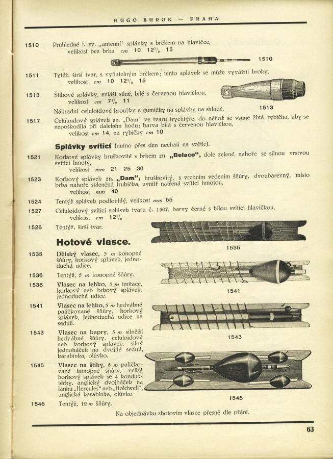Katalog firmy Hugo Burok největšího prodejce rybářských potřeb v Praze i celém Československu.Vydáno roku 1937 k výročí firmy.